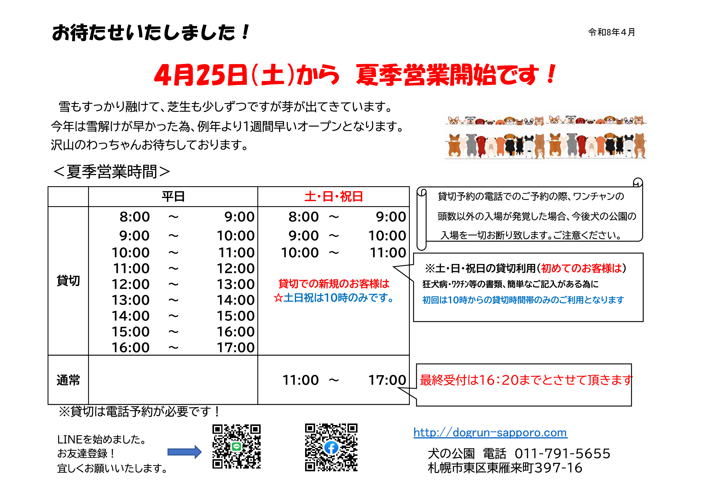 夏は手入れされた芝生の上で、冬は3m以上の雪山で遊びましょ